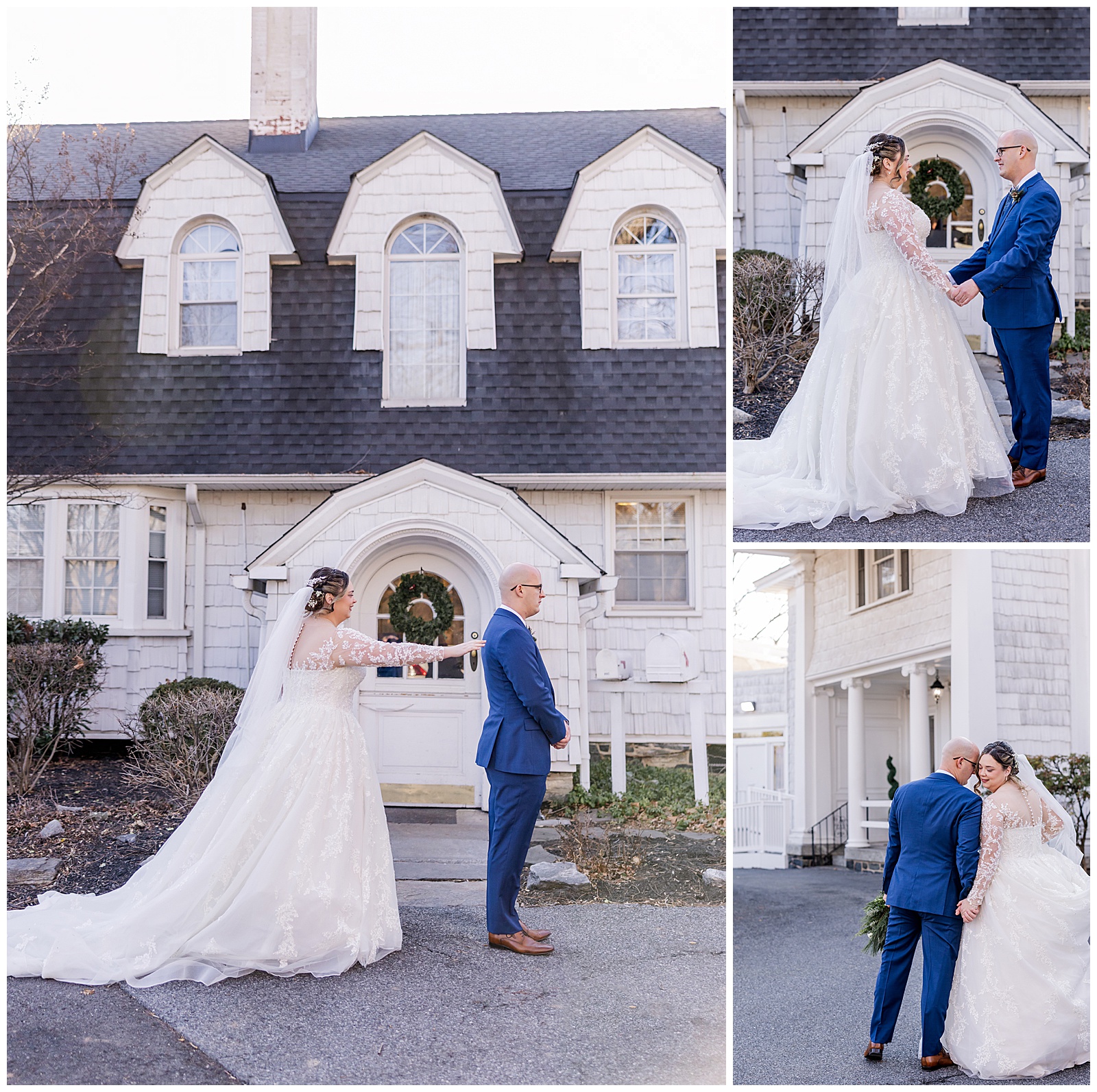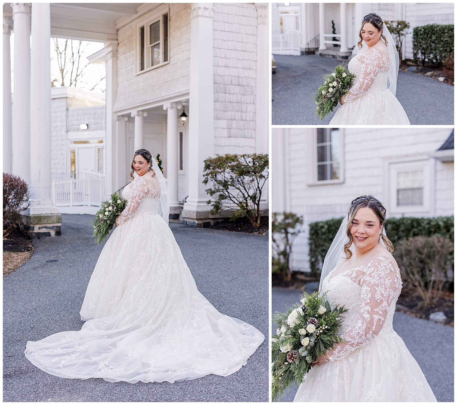The soft winter light paired with the white exterior of the mansion created a clean, editorial look that felt both elevated and effortless.