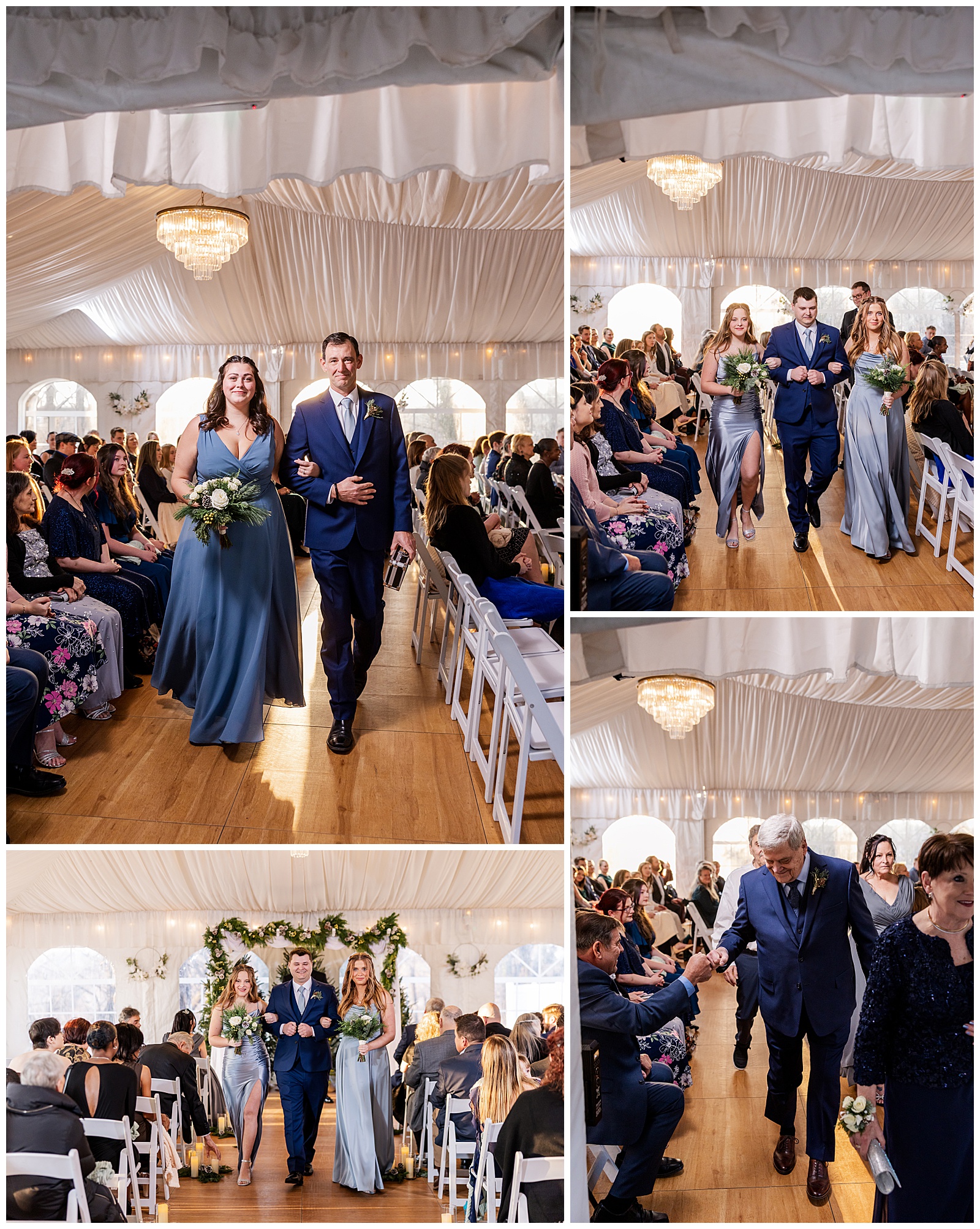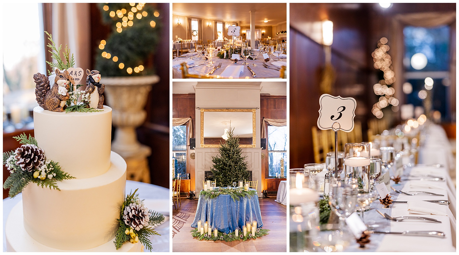 Inside the tented ceremony space, Overhills Mansion was transformed into a cozy winter dream.