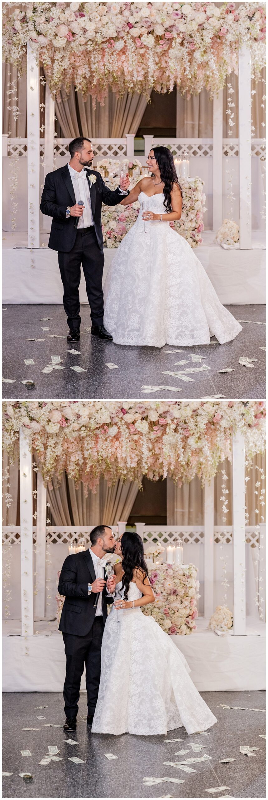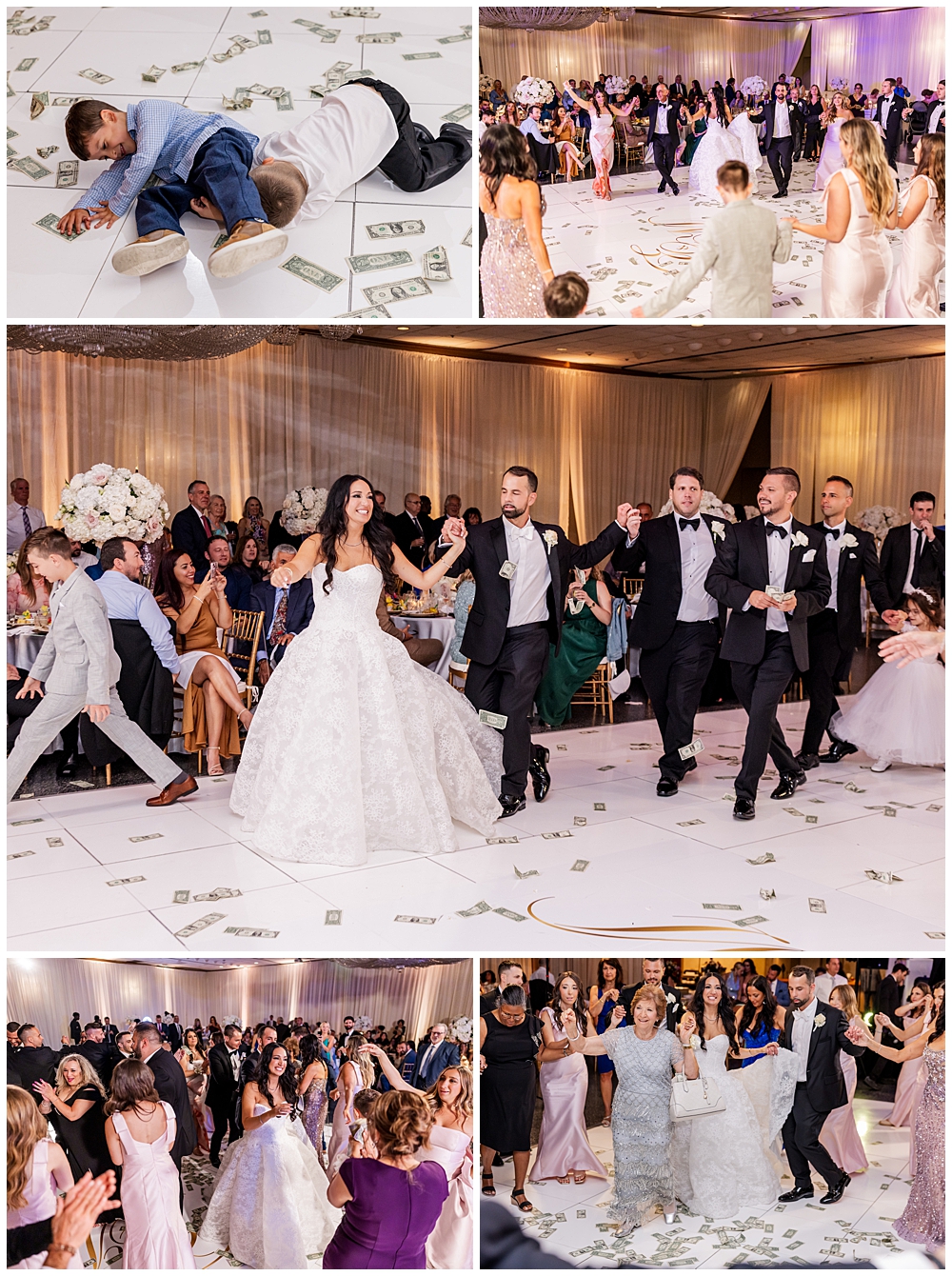 Once everyone arrived at Martin’s West, the energy skyrocketed! Over 250 guests filled the ballroom, and the celebration began with traditional Greek dancing, incredible live music, and (of course) money flying through the air — a true mark of Greek joy and generosity!