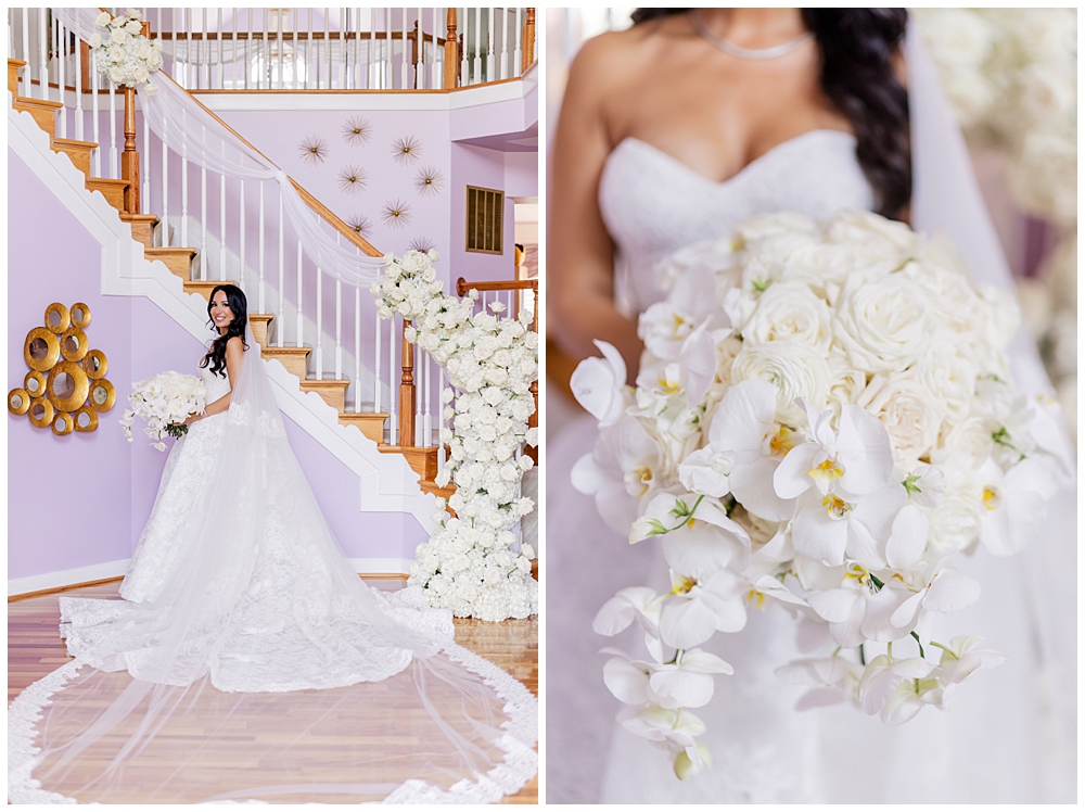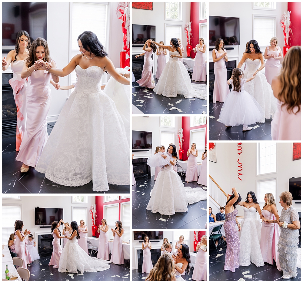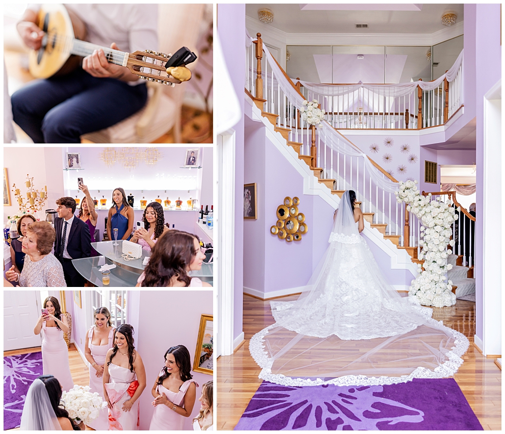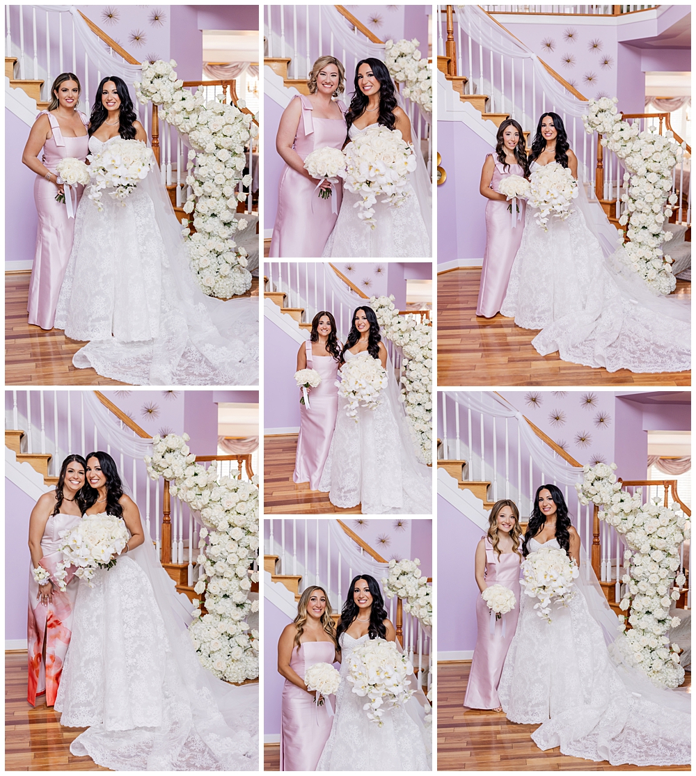 Eirini looked absolutely stunning in her gown — layers of lace, a sweeping train, and a bouquet that could have been straight out of a royal wedding. Her bridesmaids, glowing in blush satin, surrounded her with so much love and excitement as she made her grand staircase reveal. It was the perfect way to start a day that would overflow with emotion, tradition, and celebration.