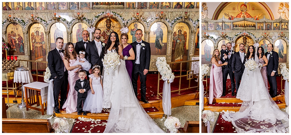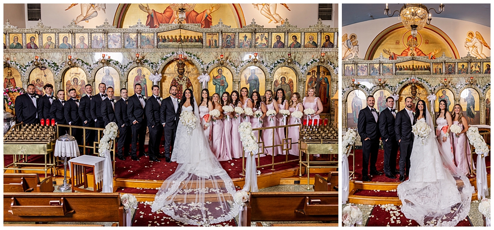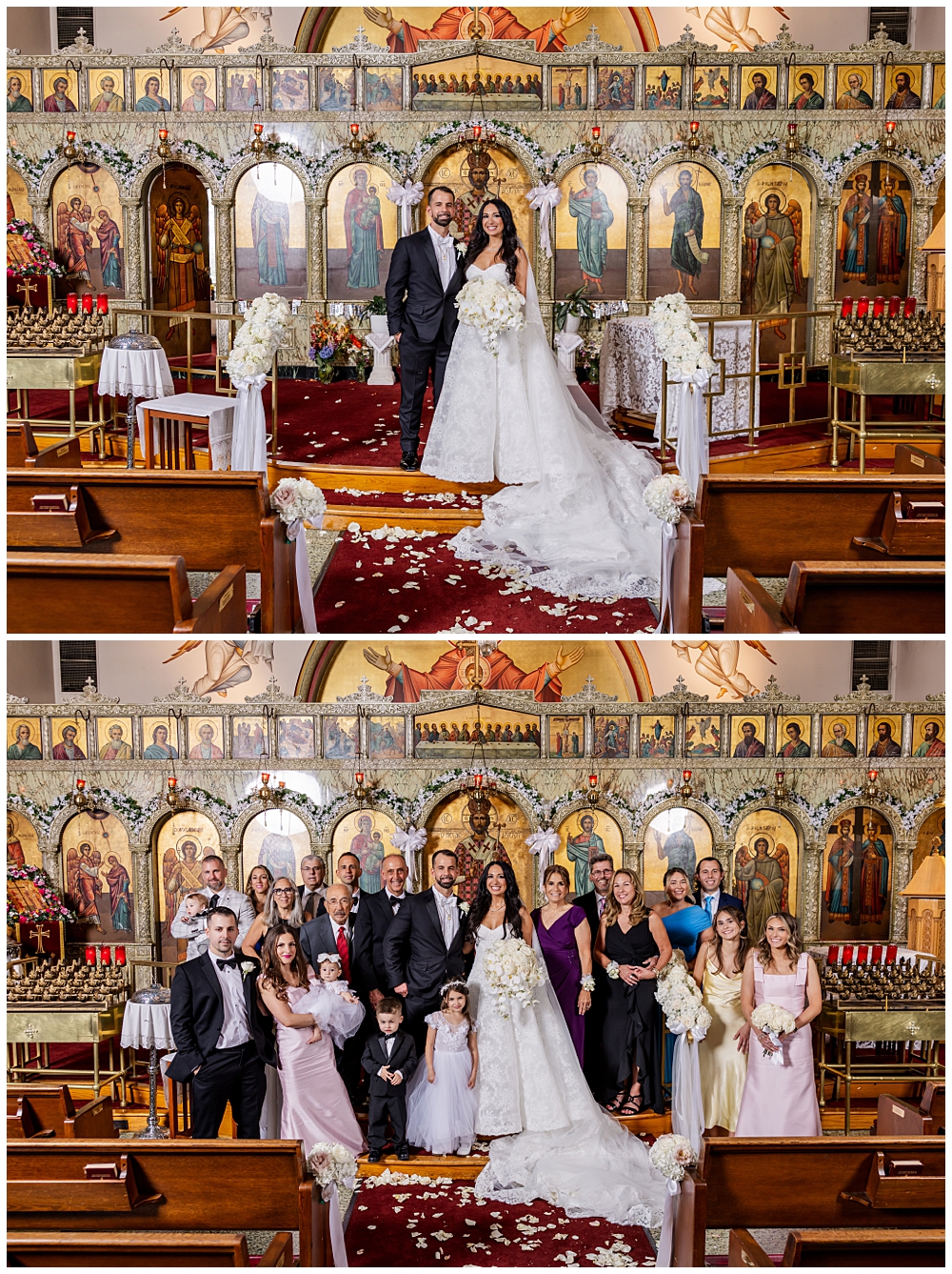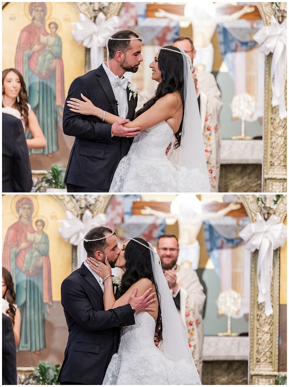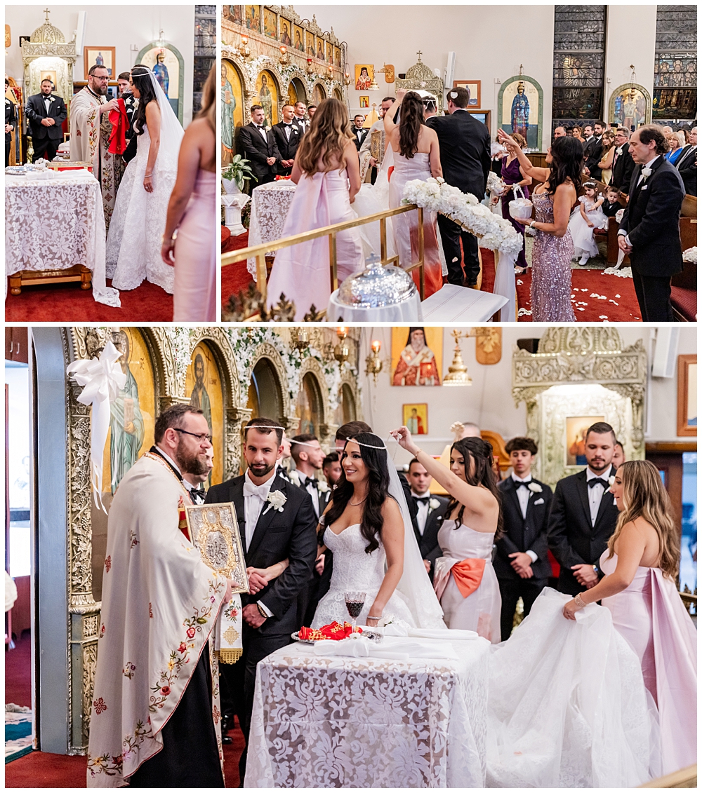 The ceremony took place at a beautiful Greek Orthodox church — a space filled with history, faith, and family. We loved capturing the timeless customs that make Greek weddings so unique: the crowns (stefana) being joined together to symbolize unity, the circling of the altar hand-in-hand, and the quiet, reverent moments between Eirini and Michael as they began their life as husband and wife.