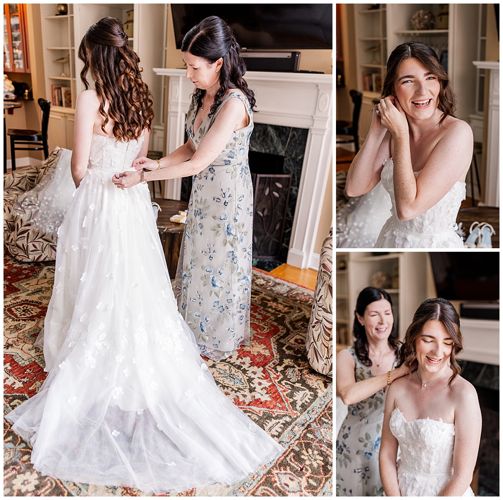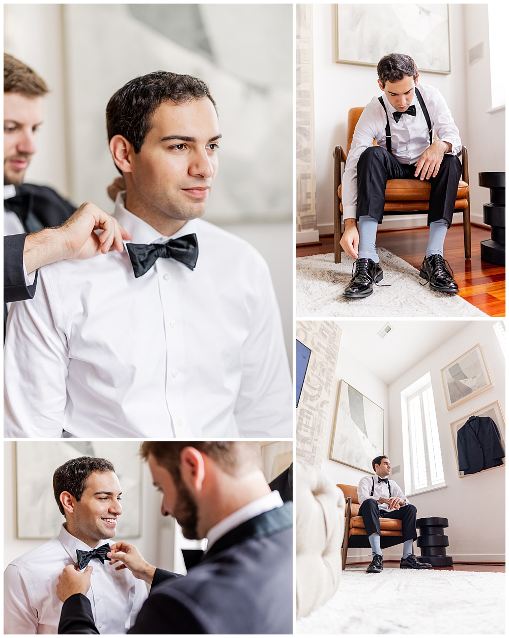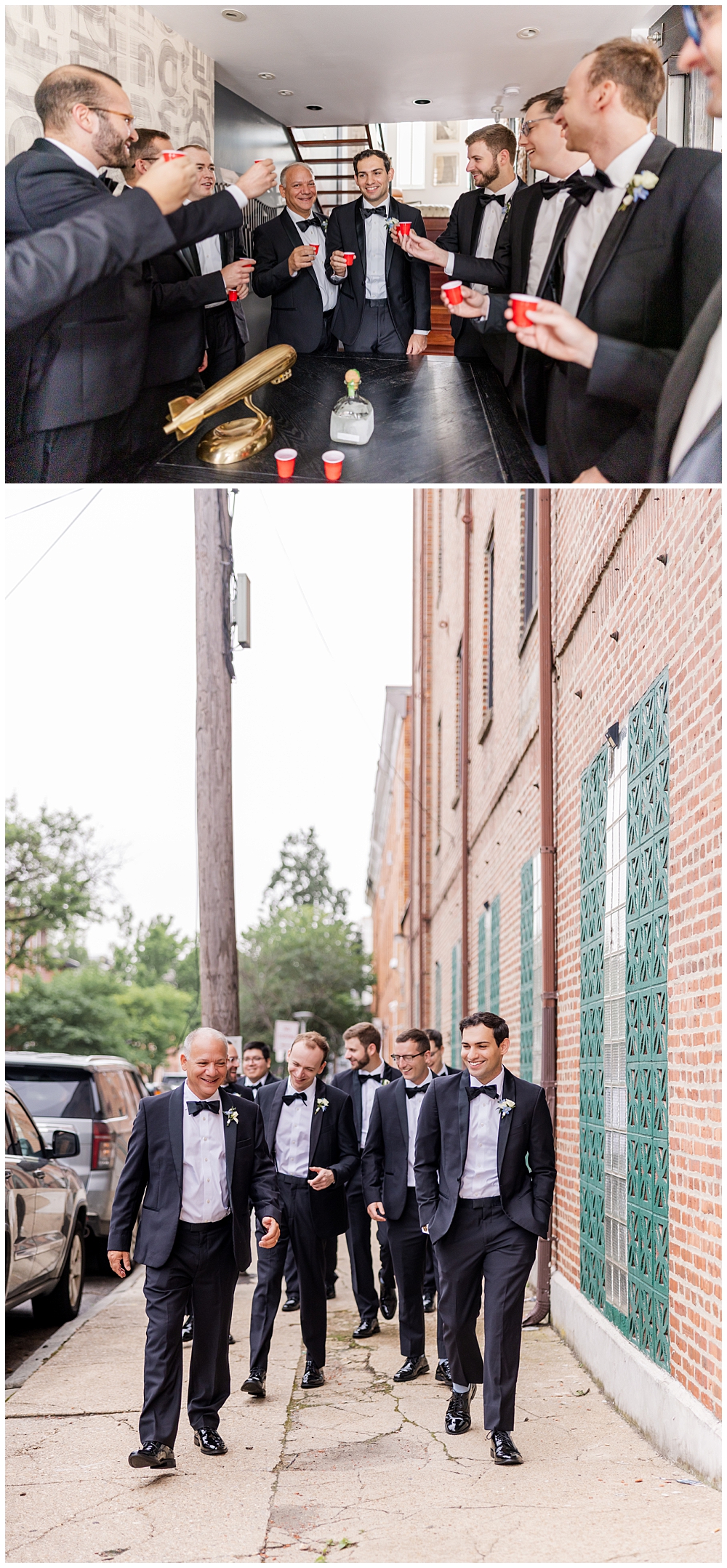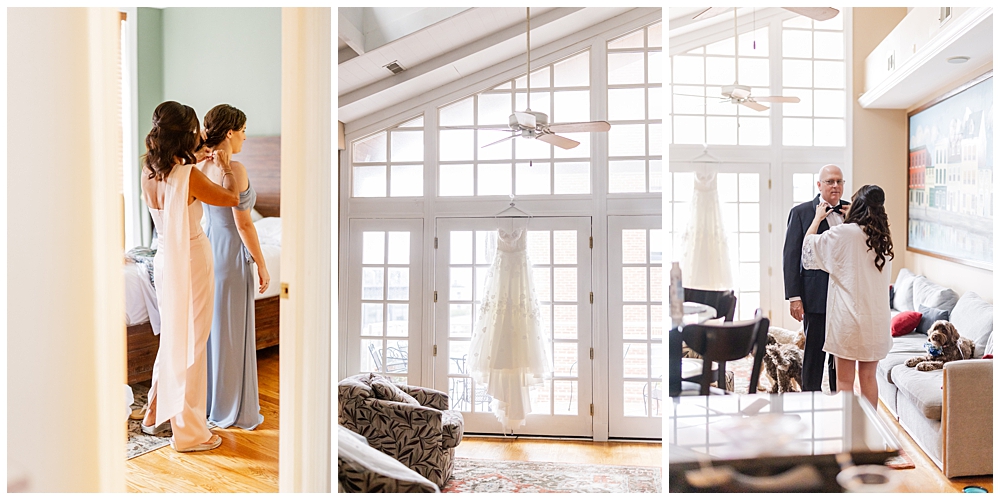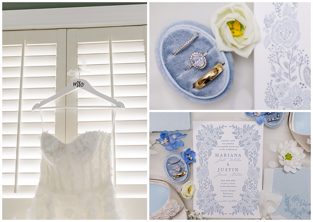 The day began with Mariana and Justin getting ready separately in beautiful Airbnbs in Fells Point. Surrounded by their closest friends and family, the anticipation was palpable. Mariana slipped into her gorgeous gown with delicate lace details, while Justin looked sharp in his classic black tux. Both spaces were filled with laughter, little happy tears, and the kind of excitement only a wedding morning brings.