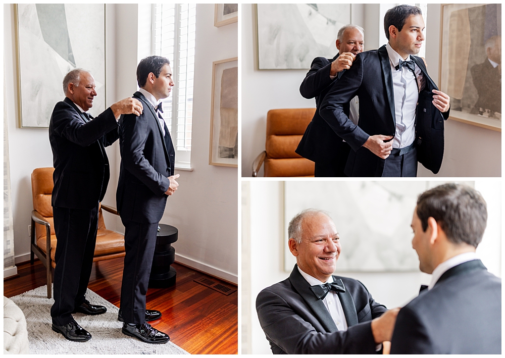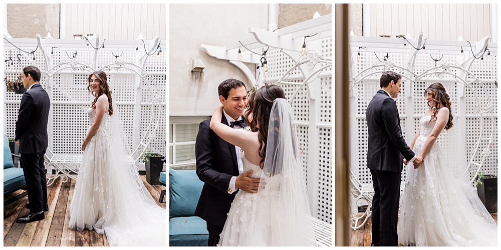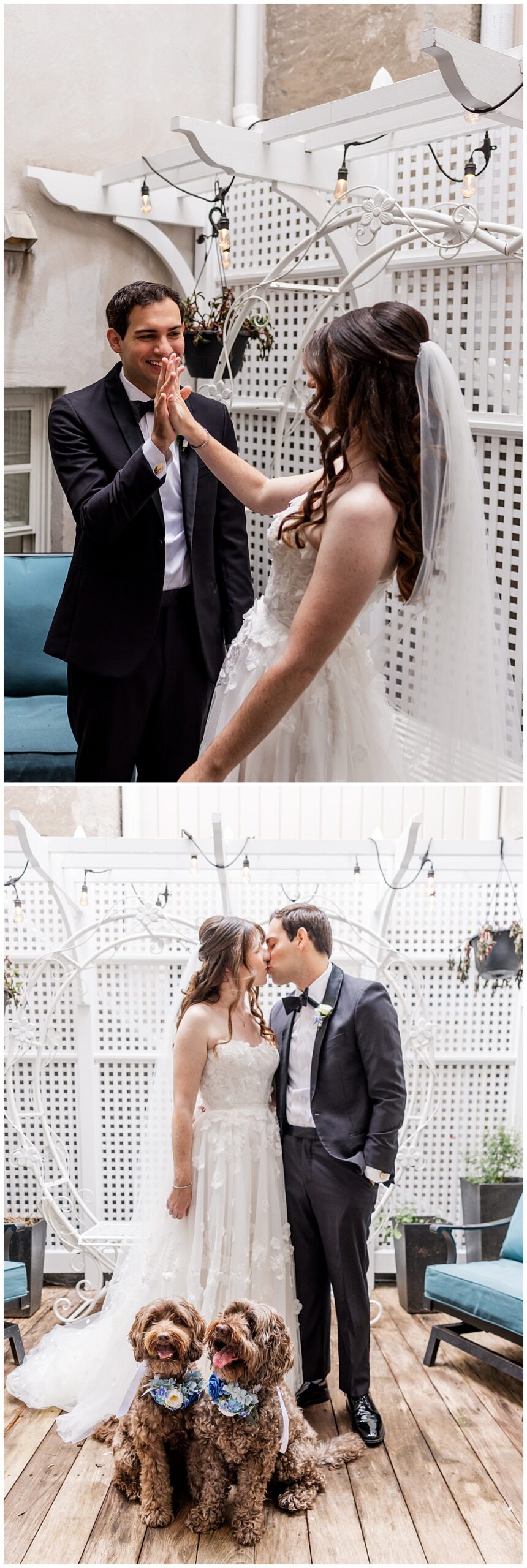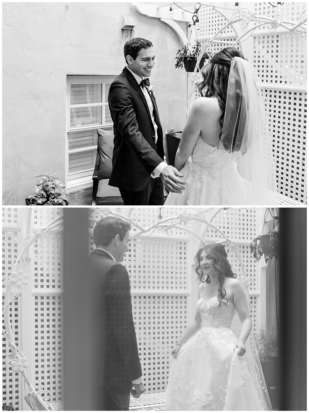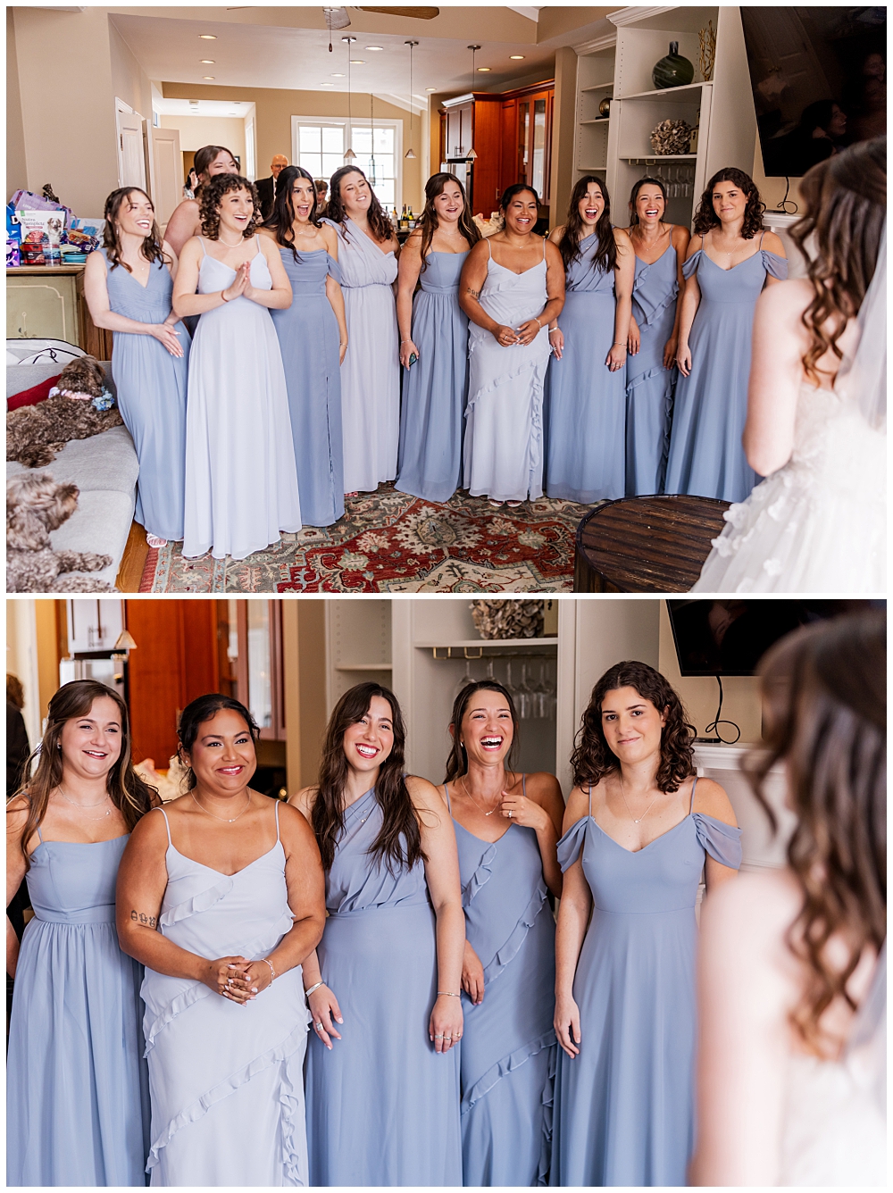 The day began with Mariana and Justin getting ready separately in beautiful Airbnbs in Fells Point. Surrounded by their closest friends and family, the anticipation was palpable. Mariana slipped into her gorgeous gown with delicate lace details, while Justin looked sharp in his classic black tux. Both spaces were filled with laughter, little happy tears, and the kind of excitement only a wedding morning brings.