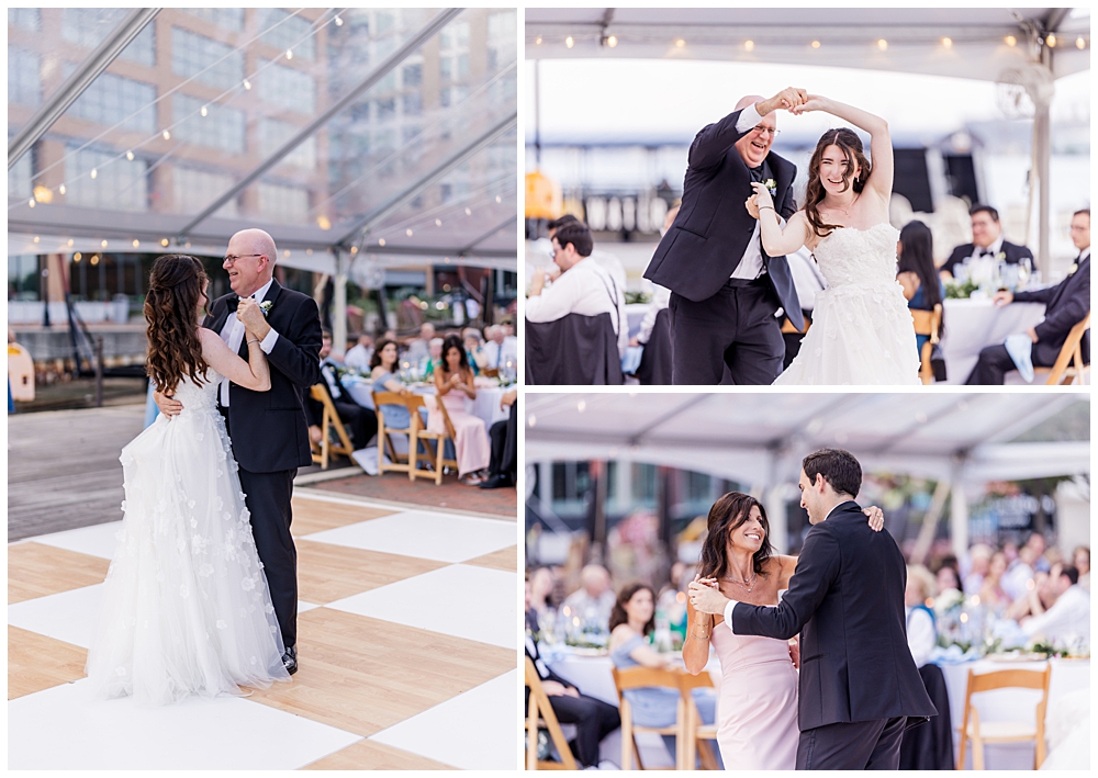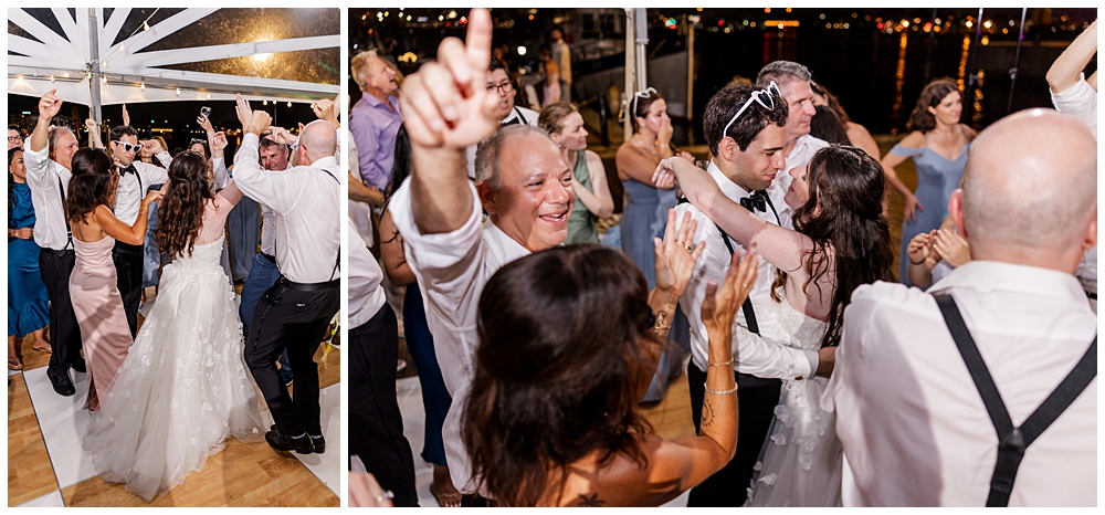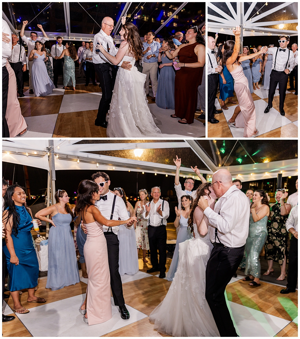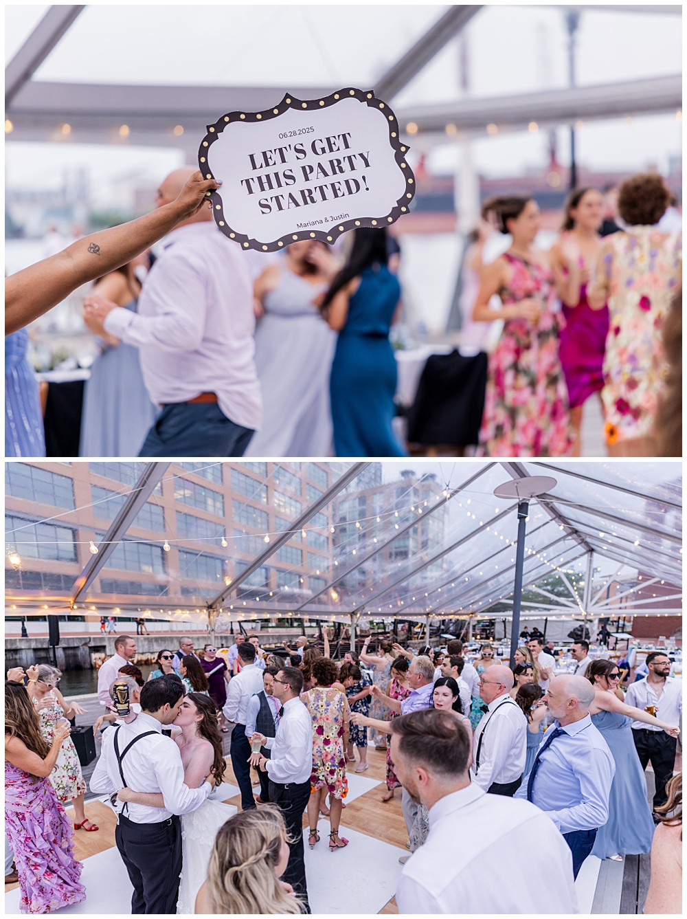 Dinner was followed by heartfelt toasts that had everyone laughing and tearing up in turn. As the sun set over the harbor, the dance floor came alive. With the glow of city lights in the background, Mariana and Justin’s friends and family danced the night away, celebrating a love story that had come full circle—from their college days at Loyola to this unforgettable waterfront evening.
