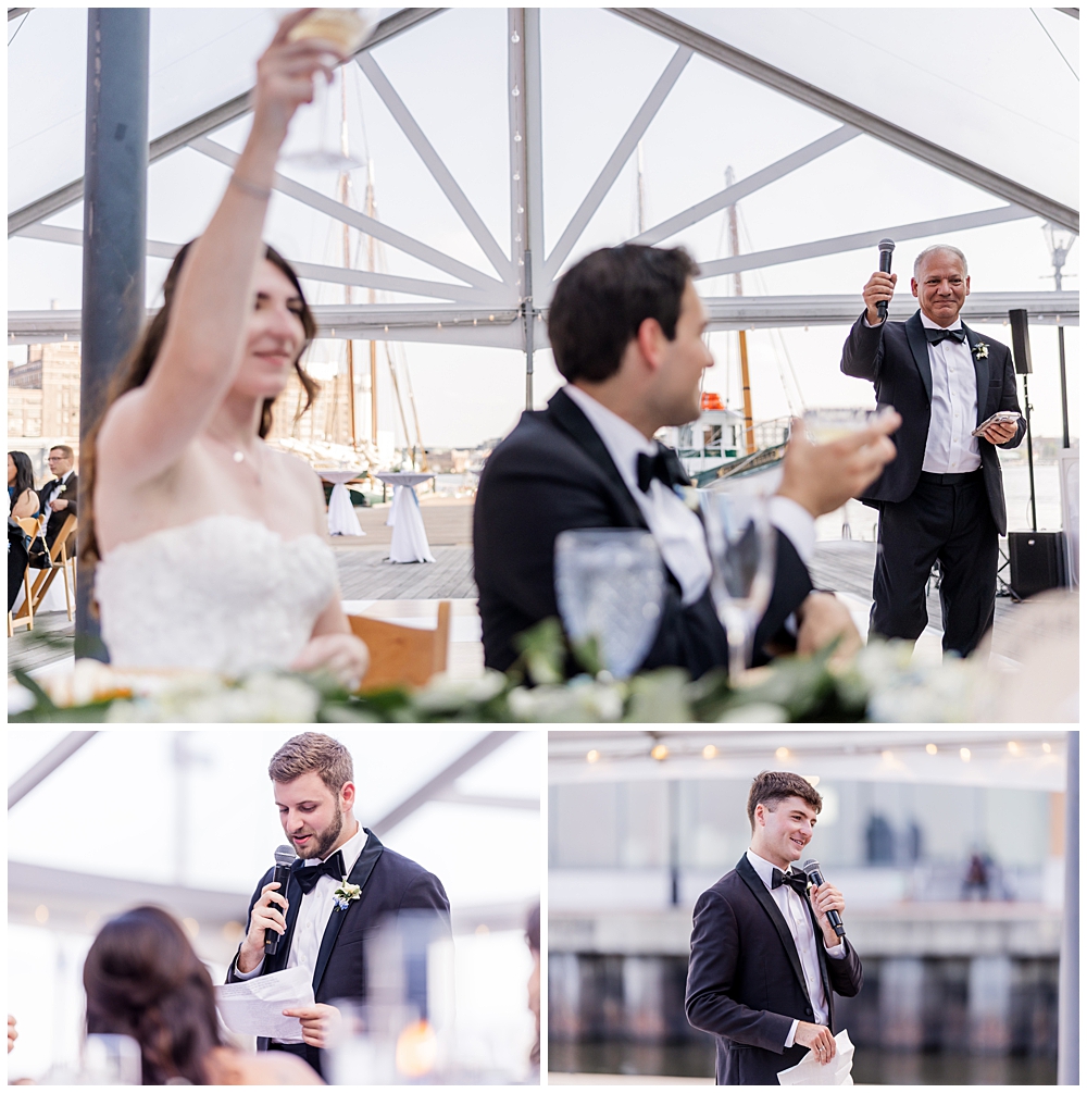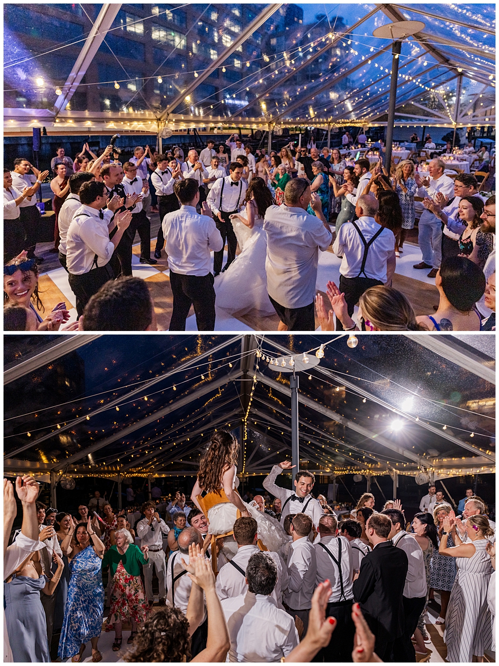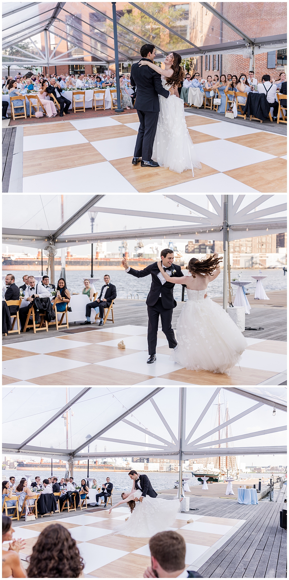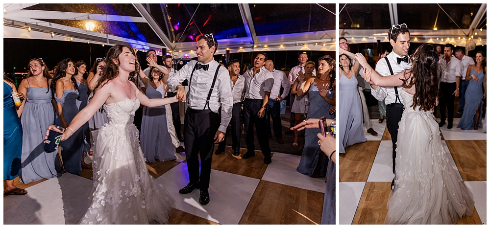Dinner was followed by heartfelt toasts that had everyone laughing and tearing up in turn. As the sun set over the harbor, the dance floor came alive. With the glow of city lights in the background, Mariana and Justin’s friends and family danced the night away, celebrating a love story that had come full circle—from their college days at Loyola to this unforgettable waterfront evening.
