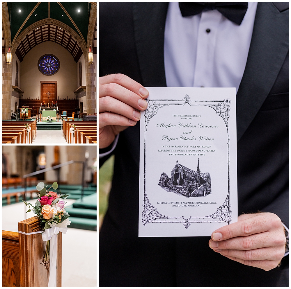 The day began at Loyola College, where Meghan and Byron exchanged vows surrounded by soaring architecture, rich wood tones, and the reverent hush that only a church ceremony can bring. Meghan was radiant as she walked down the aisle—elegant and glowing in a sleek long-sleeve gown that felt both modern and timeless.