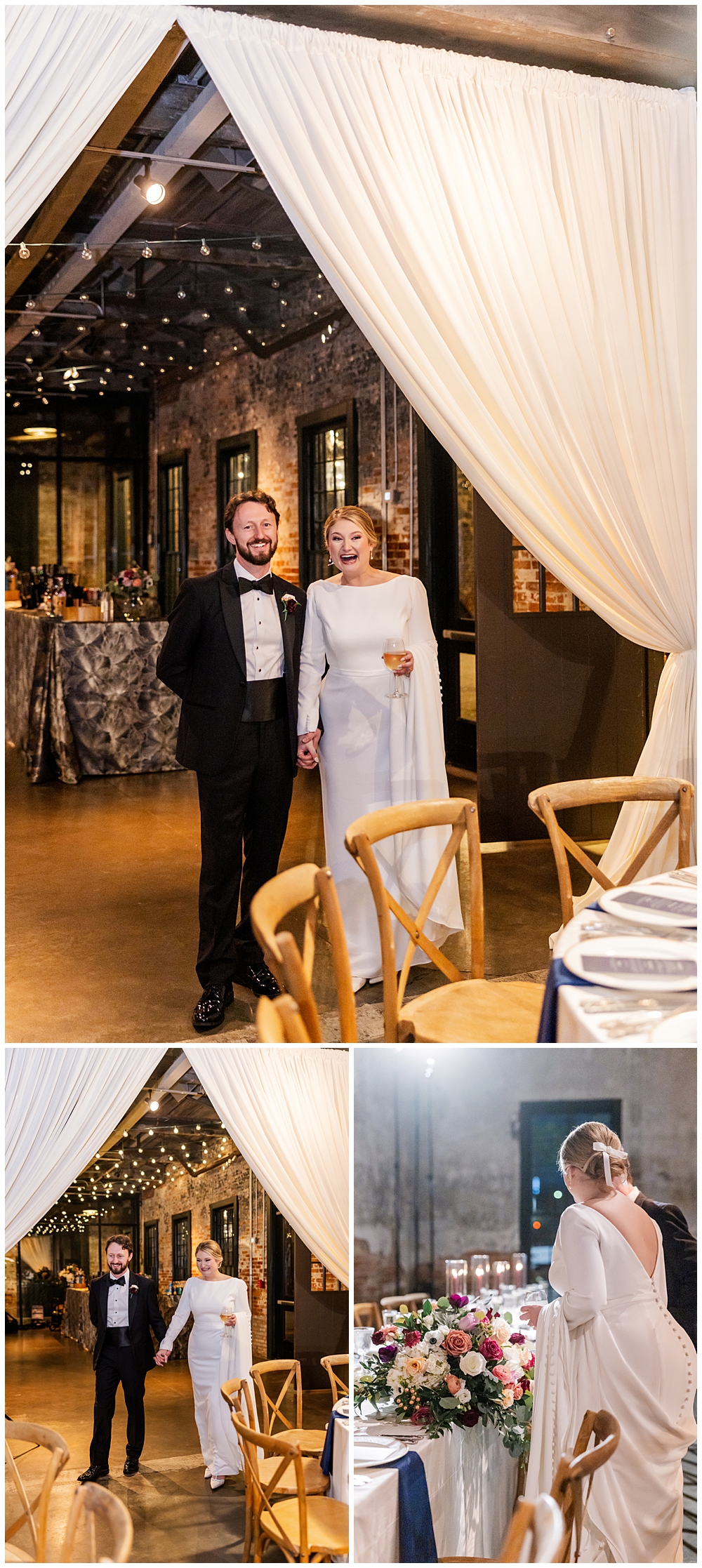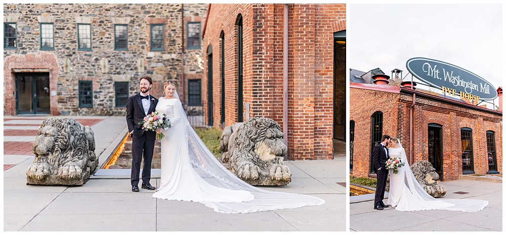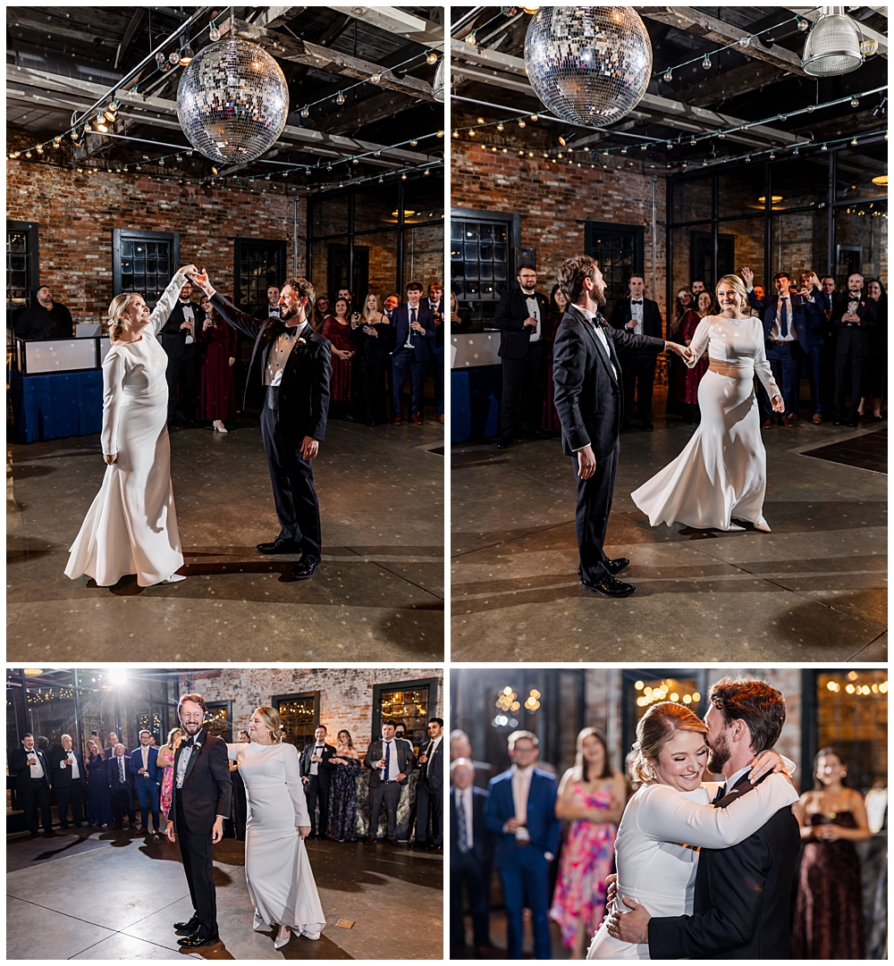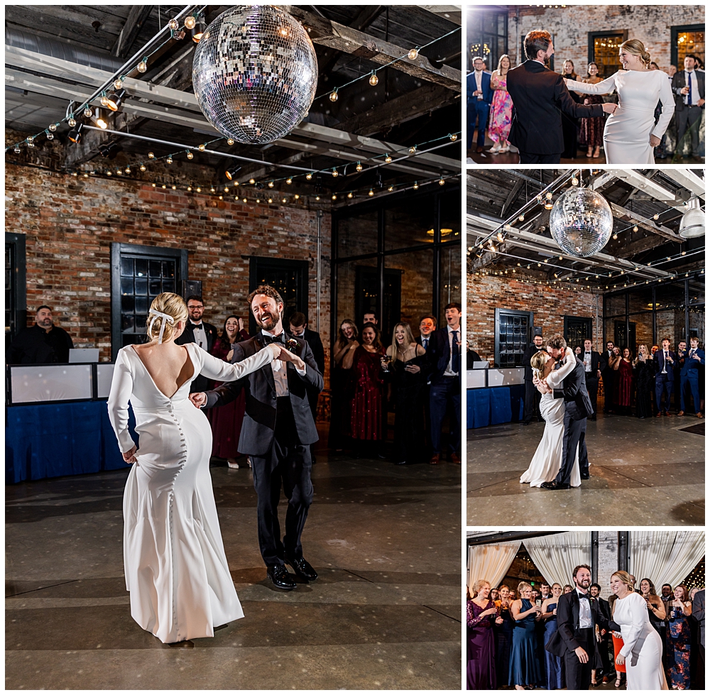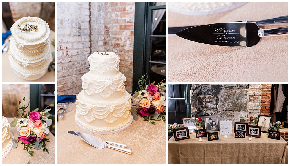 The celebration continued at Mt. Washington Dye House, where historic brick walls, glowing string lights, and warm textures transformed the space into a cozy yet elevated reception atmosphere.
