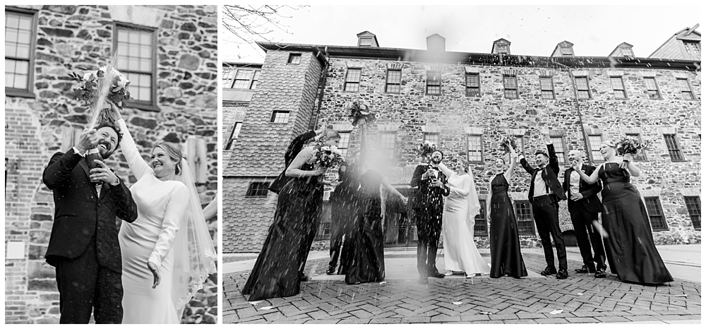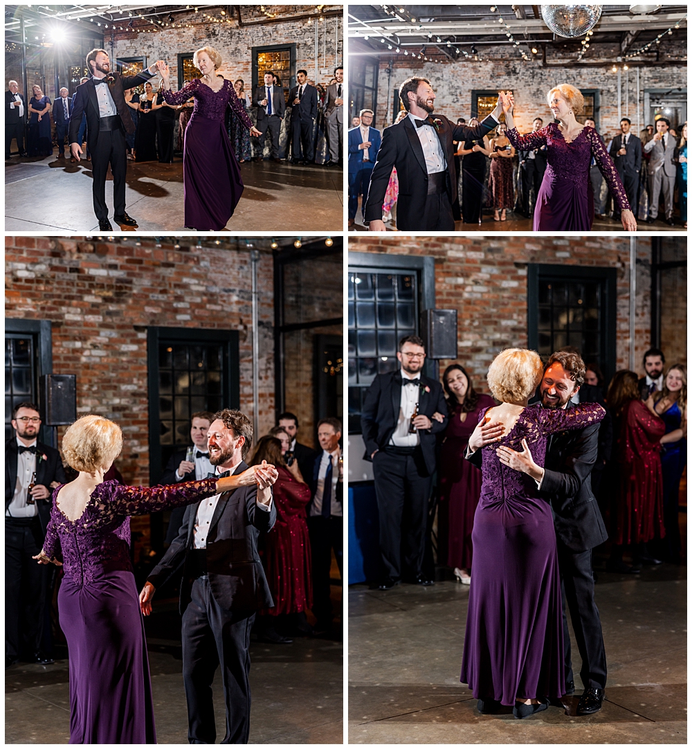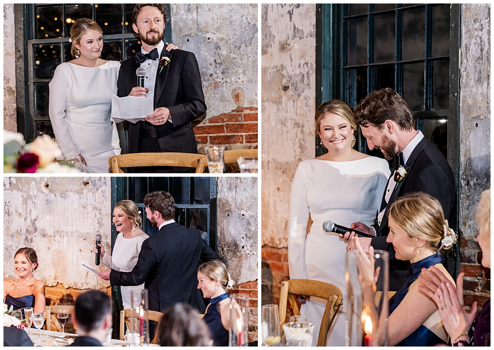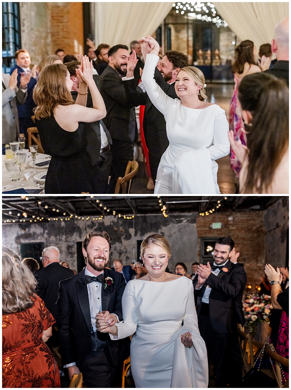 The celebration continued at Mt. Washington Dye House, where historic brick walls, glowing string lights, and warm textures transformed the space into a cozy yet elevated reception atmosphere.
