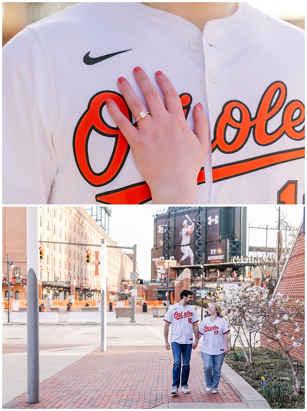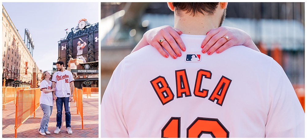 We kicked things off at Camden Yards, and it couldn’t have been a more perfect choice for them. Dressed in their Orioles jerseys (with their soon-to-be shared last name on the back—such a good touch 👏), Meghan and Dave leaned into the place that clearly holds meaning in their relationship. There was something so easy about the way they interacted—laughing, walking hand-in-hand, sneaking kisses between the gates and along Eutaw Street. It didn’t feel posed. It felt like them.