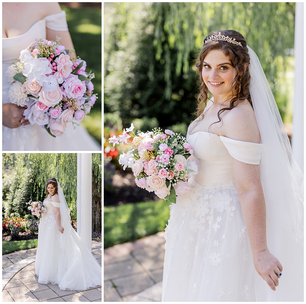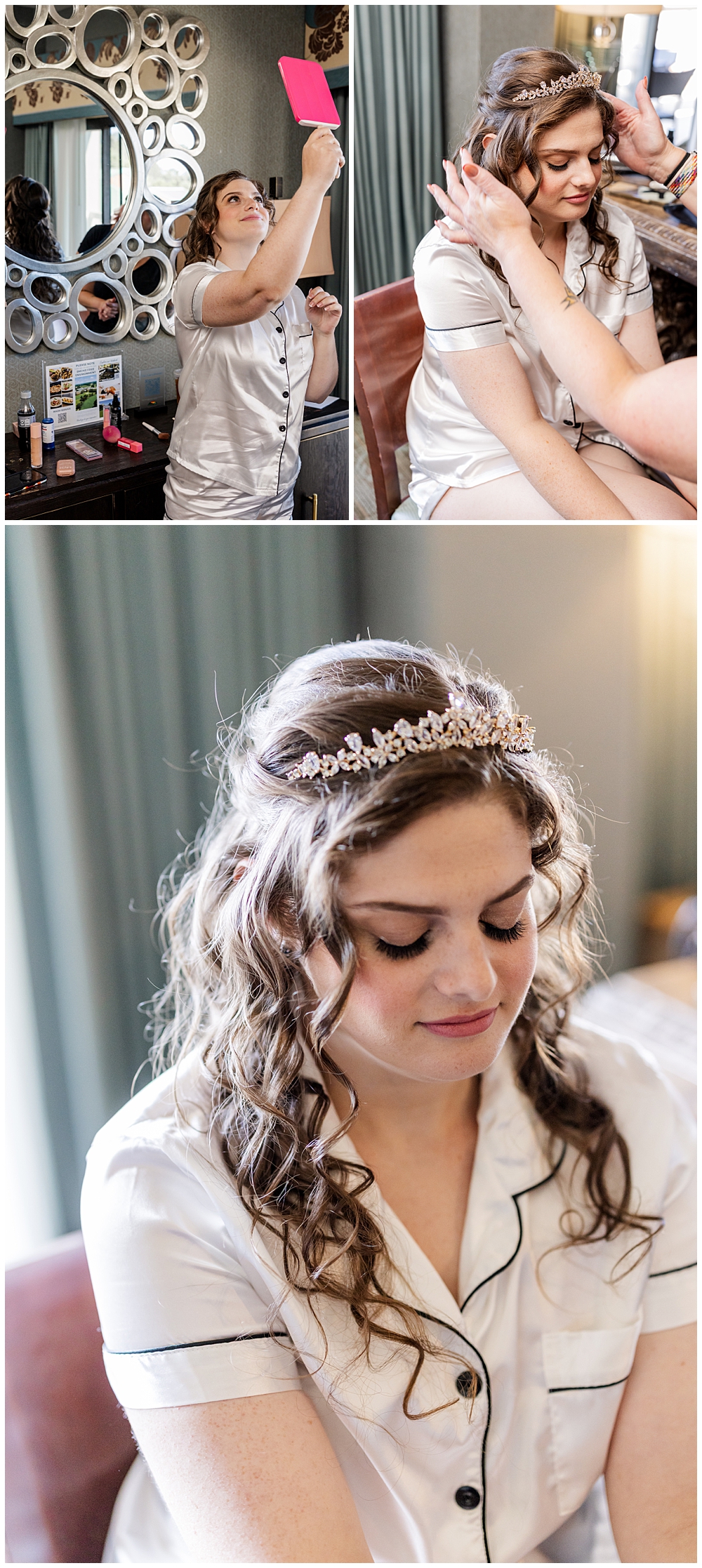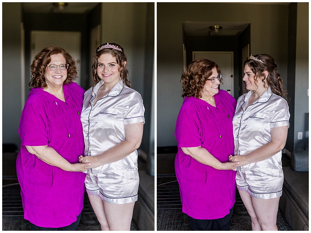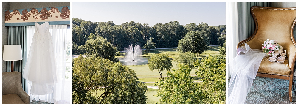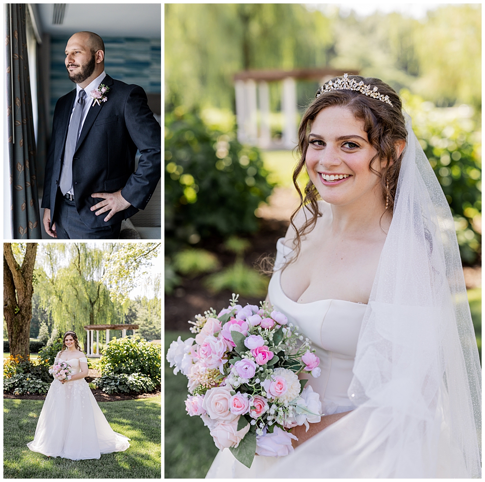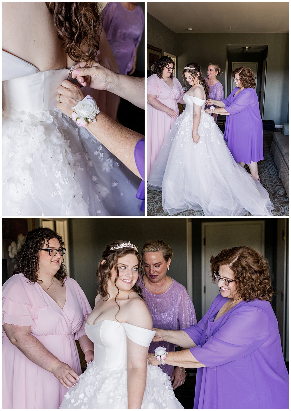Sarah and Riley both got ready on-site at Turf Valley, which made the whole morning smooth and relaxed. Sarah looked absolutely radiant in her off-the-shoulder gown adorned with delicate floral appliqués and a sparkling tiara. She got ready surrounded by her closest friends and family, and one of the sweetest moments of the morning was her time with her mom and grandparents before heading to see Riley.
