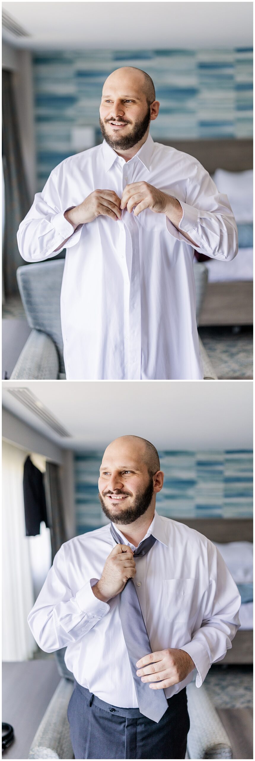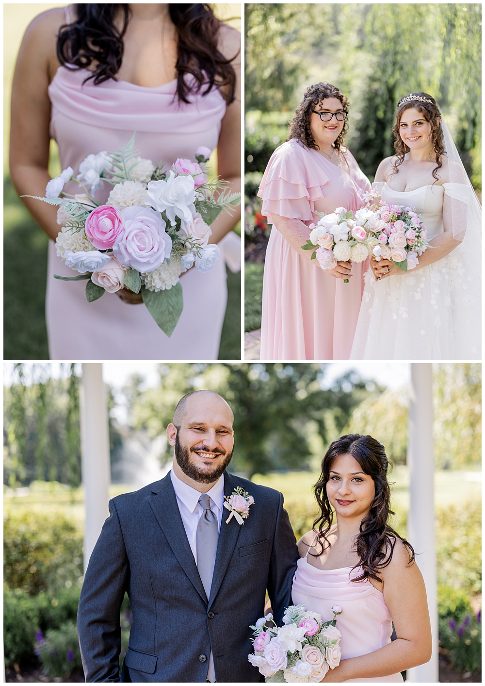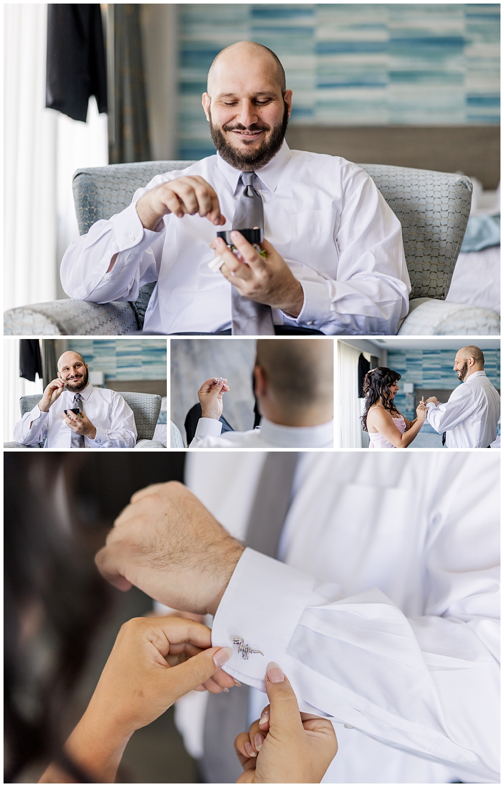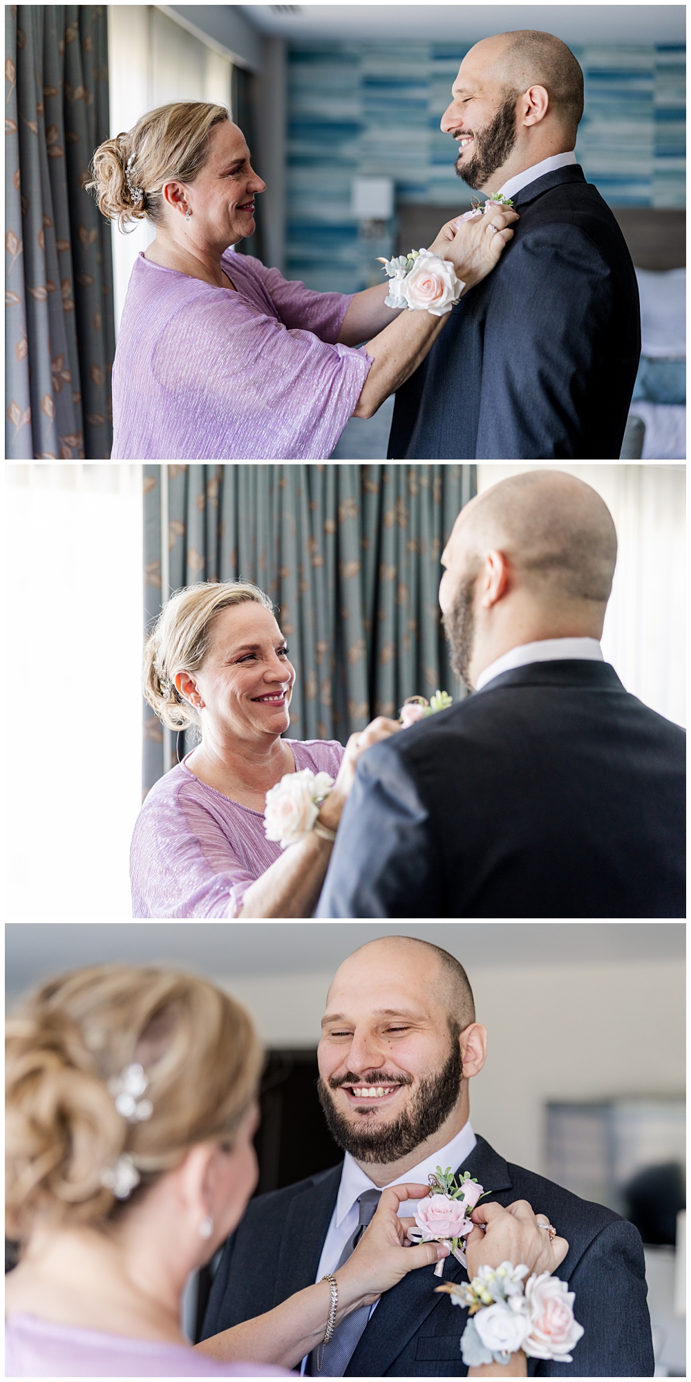 Sarah and Riley both got ready on-site at Turf Valley, which made the whole morning smooth and relaxed. Sarah looked absolutely radiant in her off-the-shoulder gown adorned with delicate floral appliqués and a sparkling tiara. She got ready surrounded by her closest friends and family, and one of the sweetest moments of the morning was her time with her mom and grandparents before heading to see Riley.
