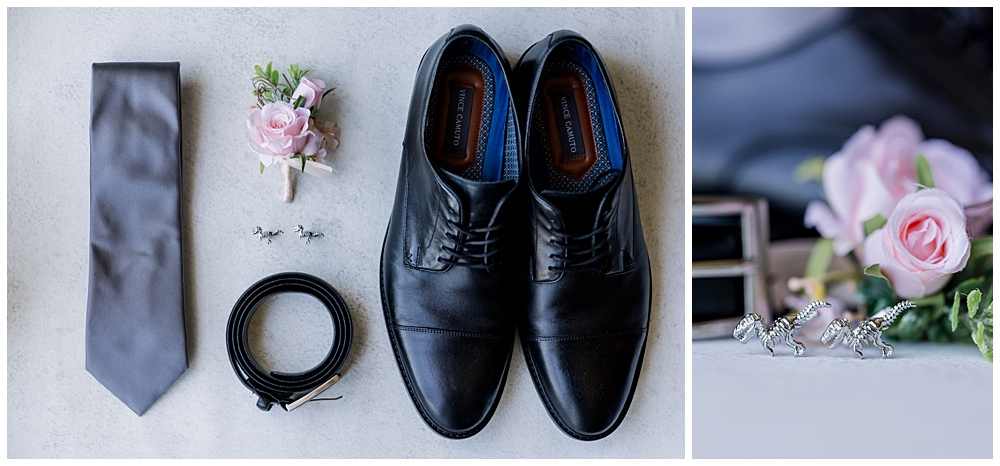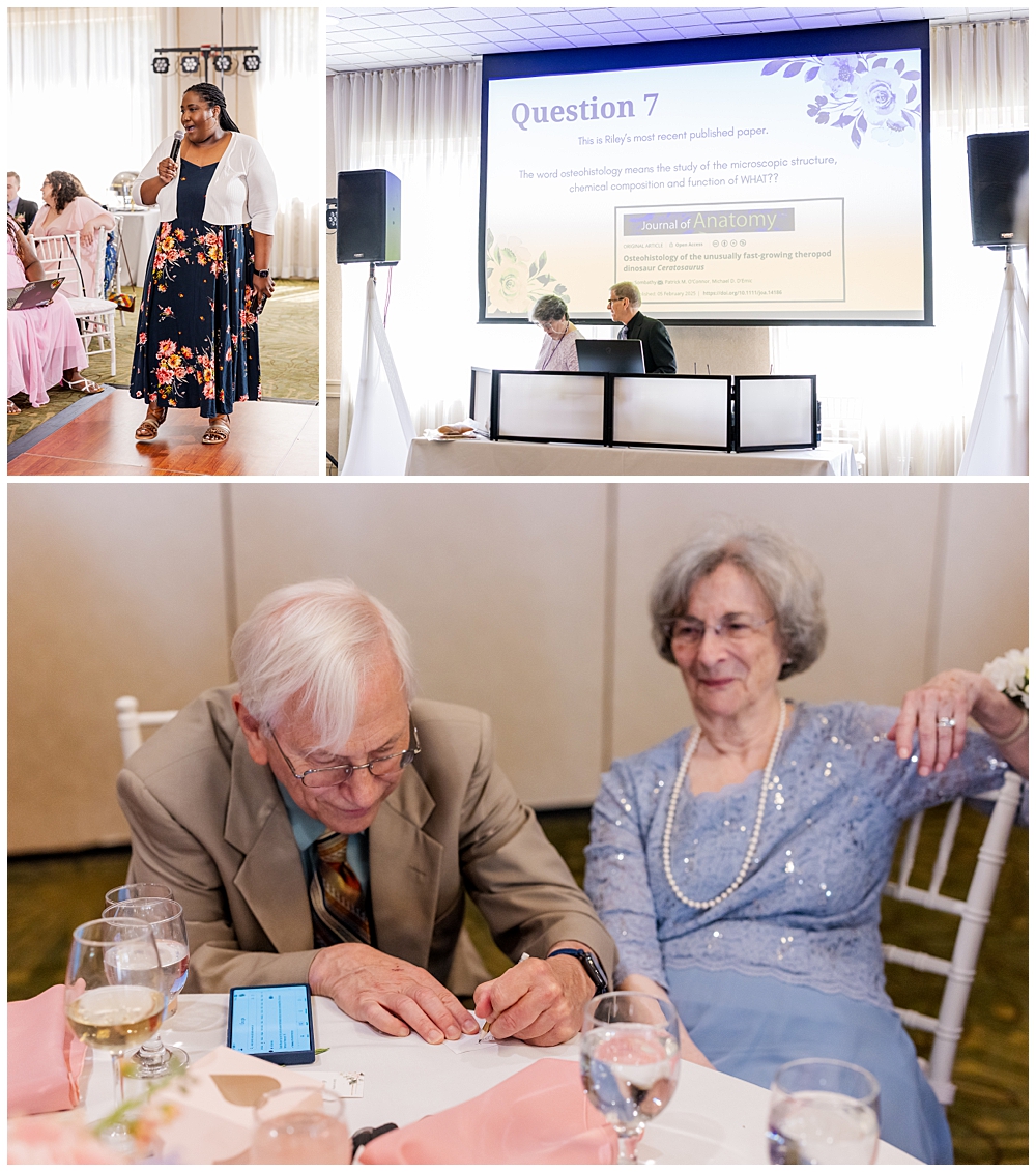 Sarah and Riley’s wedding day at Turf Valley Resort was full of love, laughter, and a few prehistoric surprises! This sweet couple both work with dinosaurs — Riley is a paleontologist (yes, a real-life dinosaur digger!) and Sarah works in research and the lab side of things. Naturally, they found ways to weave a little dino magic throughout their day — from tiny figurines on their cake to custom cufflinks and even a surprise dinosaur-themed flash mob dance that had everyone on their feet!
