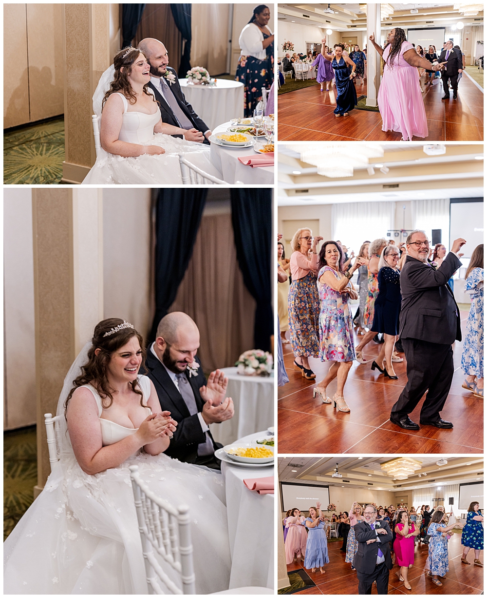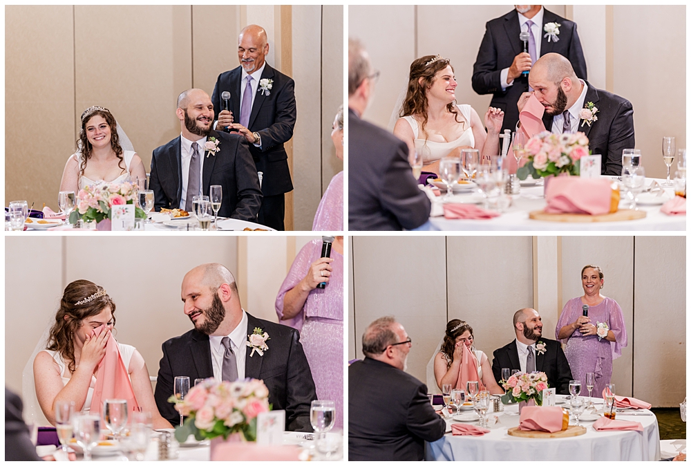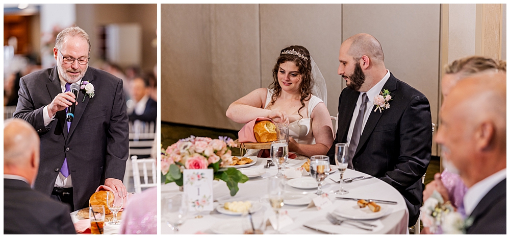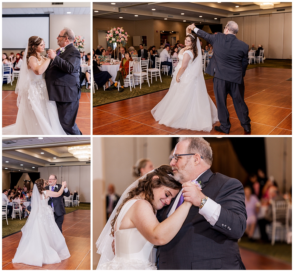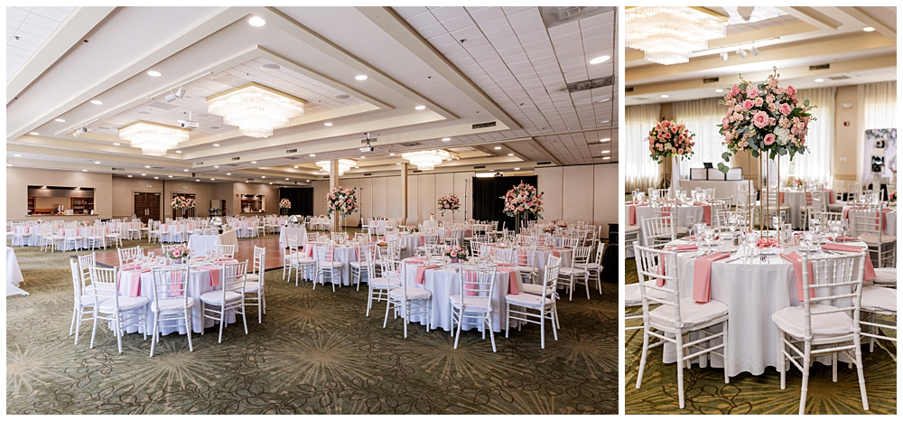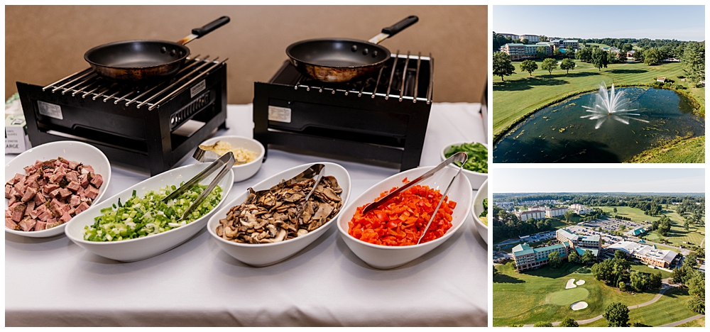 The ballroom at Turf Valley was transformed with elegant white and blush décor, tall floral centerpieces, and glowing candlelight. Their guests enjoyed an incredible variety of food (there was so much food — something for everyone!) and a lively, joy-filled celebration that kept the dance floor packed from start to finish.