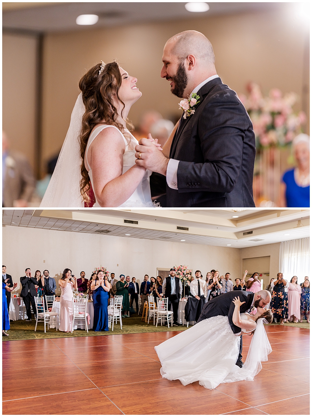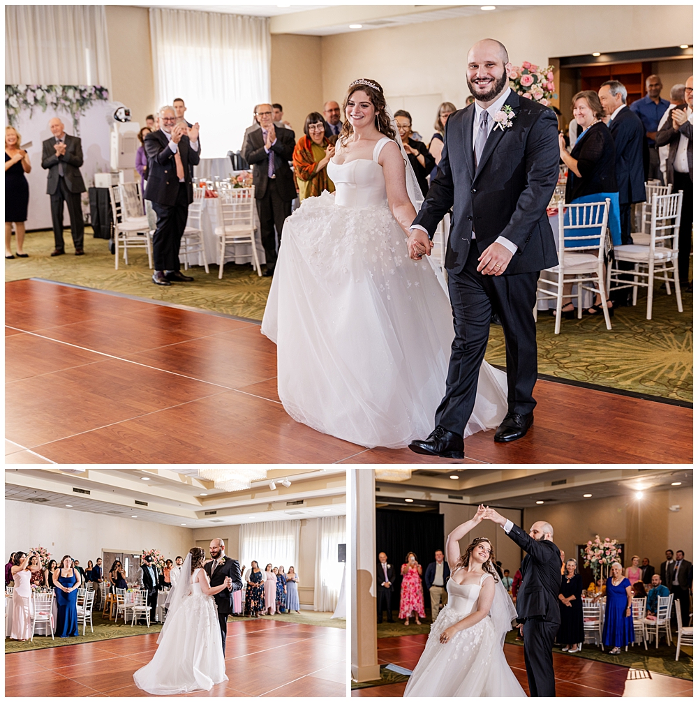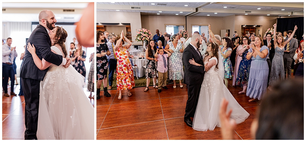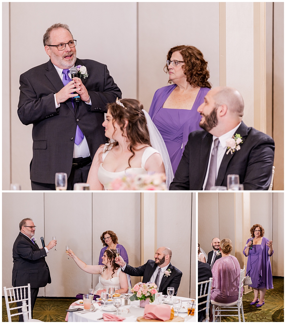 The ballroom at Turf Valley was transformed with elegant white and blush décor, tall floral centerpieces, and glowing candlelight. Their guests enjoyed an incredible variety of food (there was so much food — something for everyone!) and a lively, joy-filled celebration that kept the dance floor packed from start to finish.